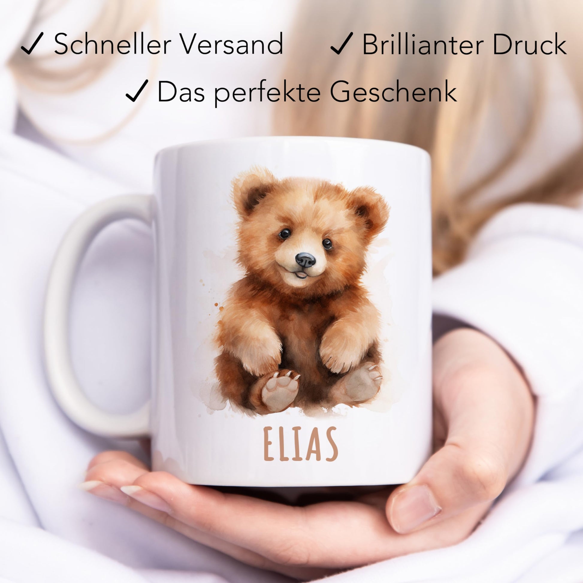 Unsere personalisierten Bärchen Tasse - eine Tasse, die nicht nur Getränke serviert, sondern auch eine süße Umarmung für Kinder darstellt. Diese liebevoll gestaltete Teetasse ist perfekt für Mädchen und Jungen. Eine niedliche Bären Illustration ziert diese Tasse, die zusätzlich mit einem Namen personalisiert werden kann. Füge den Namen deines kleinen Lieblings hinzu oder gestalte ein besonderes Geschenk für einen Bärenliebhaber. Hergestellt aus hochwertiger Keramik, liegt diese Tasse angenehm in der Hand und sorgt für ein genussvolles Trinkerlebnis. Die kinderfreundliche Größe macht sie ideal für den Morgen-Tee oder den Schokoladen-Nachmittagssnack. Mit einem Fassungsvermögen von 330 ml bietet die Bärchen Tasse ausreichend Platz für deine Lieblingsgetränke. Die breite, griffige Basis sorgt für Stabilität und verhindert, dass die Tasse leicht umkippt. Die Tasse ist nicht nur süß, sondern auch praktisch. Mikrowellen- und spülmaschinengeeignet, passt sie sich perfekt dem hektischen Lebensstil an und erleichtert die Zubereitung von warmen Getränken oder die Reinigung nach einem leckeren Kakao. Verschenke einen Hauch von Niedlichkeit und Individualität mit der personalisierten Bärchen Tasse. Ob für die Tasse deines Kindes, als Geschenk für einen Freund oder einfach nur, um deinen Morgen zu verschönern - diese Tasse zaubert ein Lächeln auf jedes Gesicht und lässt Freude in dein Zuhause einziehen.
