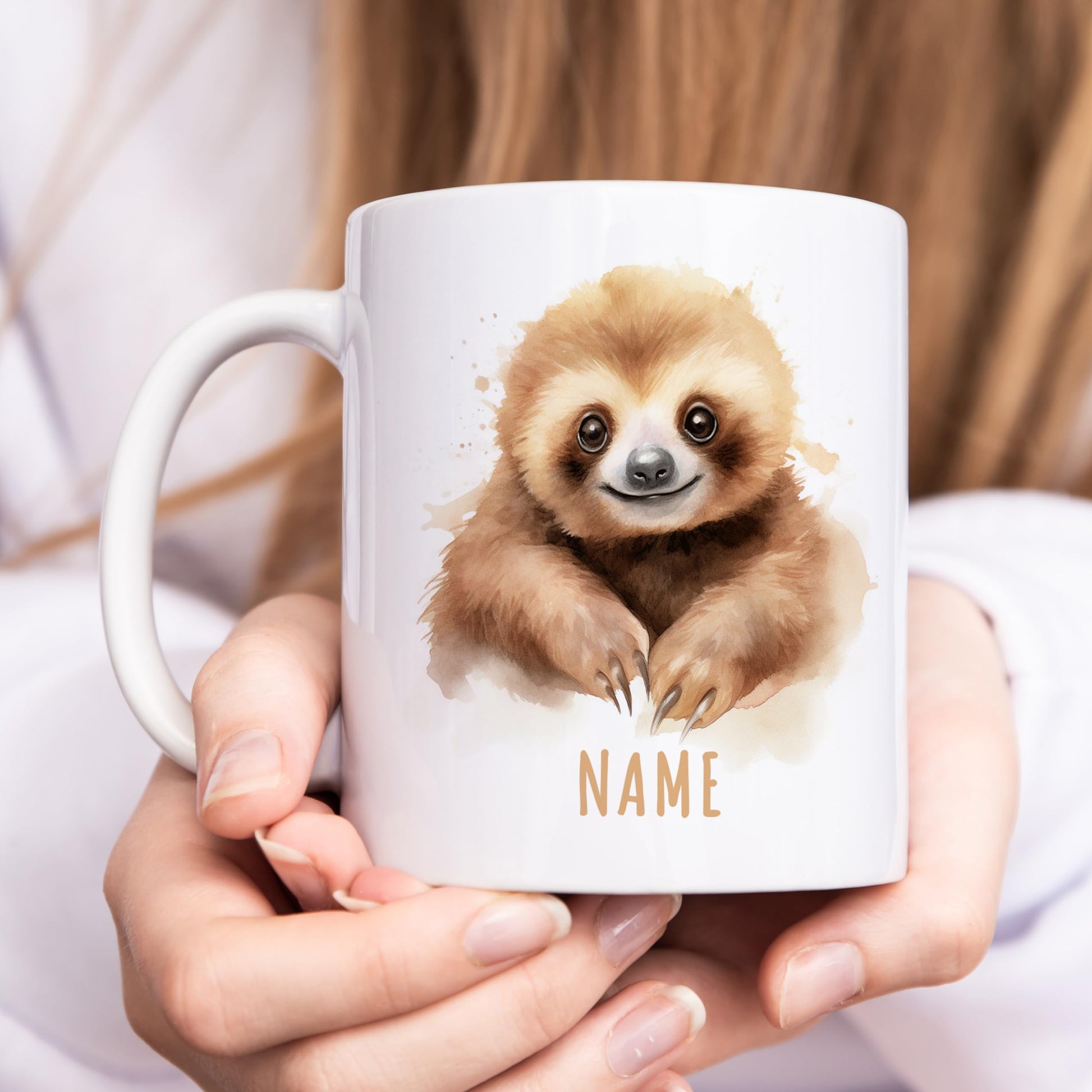 Die personalisierte Faultier Tasse - Spaß und Freude für Groß und Klein. Faultiere sind nicht nur die Lieblingstiere vieler Kinder, sondern sie strahlen auch Fröhlichkeit und Unbeschwertheit aus. Unsere personalisierte Faultier Kaffeetasse ist daher das ideale Geschenk, um Jungen und Mädchen gleichermaßen zu begeistern. Diese niedliche Kindertasse zeigt ein fröhliches Faultier, der garantiert ein Lächeln auf jedes Gesicht zaubert. Der besondere Clou: Du kannst die Tasse mit dem Namen des Besitzers oder der Besitzerin personalisieren. Das macht die Tasse zu einem einzigartigen und persönlichen Geschenk, das im Alltag für gute Laune sorgt. Ob als Geschenk zum Kindergeburtstag, zum Schulanfang oder einfach nur als Überraschung für zwischendurch, die personalisierte Keramiktasse ist vielseitig einsetzbar. Kinder werden die lustige Illustration lieben und stolz darauf sein, ihre eigene Tasse zu besitzen. Aber nicht nur Kinder werden von dieser Tasse begeistert sein. Auch Erwachsene, die eine Vorliebe für niedliche und humorvolle Designs haben, werden sich über dieses Geschenk freuen. Ob im Büro, Kindergarten oder zu Hause, diese Tasse wird zum Hingucker und Gesprächsthema. Unsere Tassen sind aus hochwertiger Keramik gefertigt und wurden so gestaltet, dass sie den Anforderungen des täglichen Gebrauchs standhalten. Sie sind robust, langlebig und leicht zu reinigen. Egal ob für den morgendlichen Kaffee, Tee oder für Kakao am Abend, die Tasse ist vielseitig einsetzbar. Die personalisierte Faultier Namenstasse ist nicht nur ein Geschenk, sondern auch ein täglicher Begleiter, der Freude und gute Laune in den Alltag bringt. Sie erinnert daran, dass es wichtig ist, auch im stressigen Alltag das Lächeln nicht zu vergessen. Überrasche deine Lieben, sei es Kinder oder Erwachsene, mit dieser entzückenden Tasse und schenke ihnen Freude, Spaß und ein ganz persönliches Geschenk. Bestelle jetzt und zaubere ein Lächeln in den Alltag!