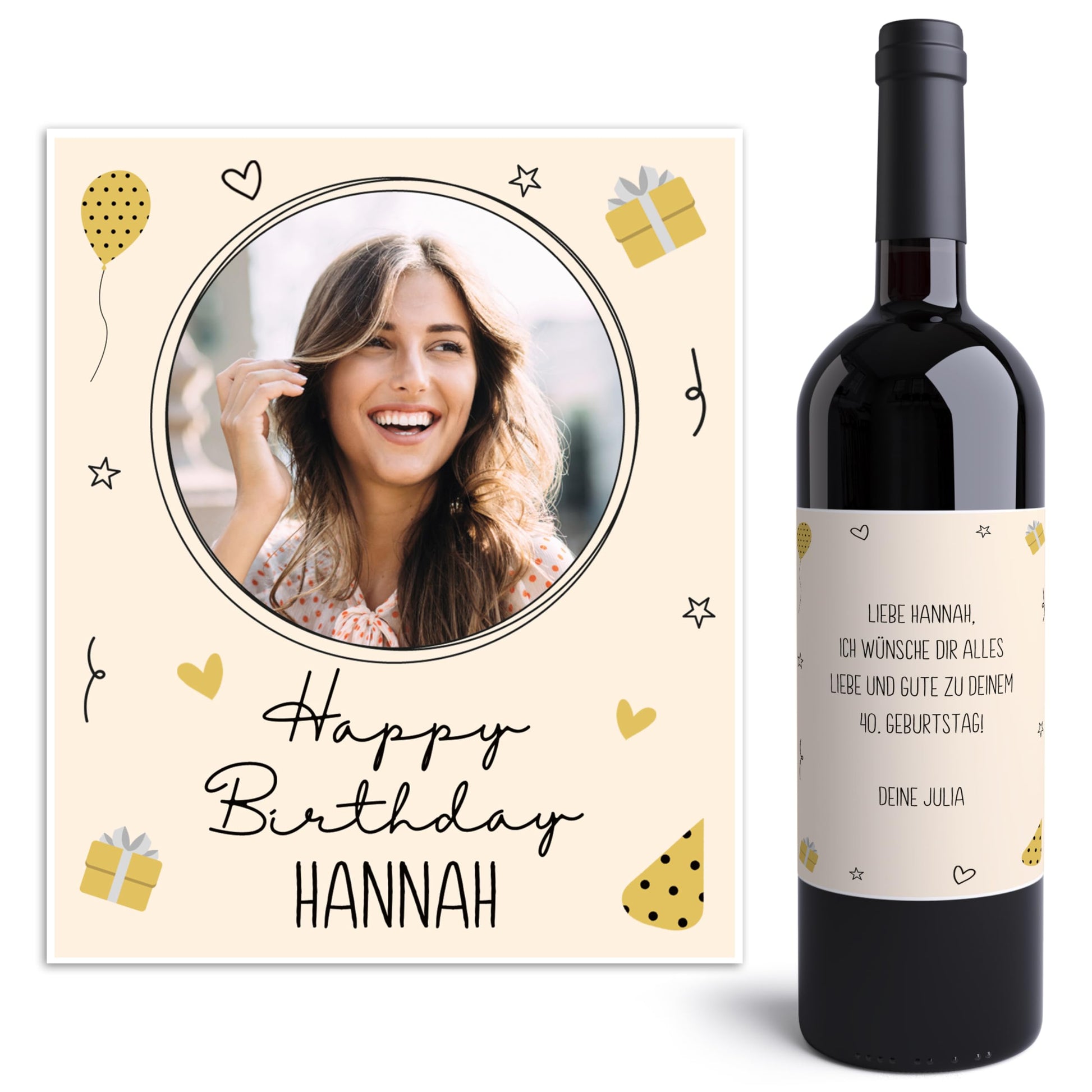 Feiere den besonderen Geburtstag deiner besten Freundin auf einzigartige Weise mit unseren personalisierten Flaschenetiketten mit Foto. Diese stilvollen und individuell gestaltbaren Etiketten sind das perfekte Accessoire für jede Geburtstagsfeier und verleihen deinen Geschenken eine persönliche Note, die garantiert in Erinnerung bleibt. Unsere personalisierten Flaschenetiketten sind ideal, um Weinflaschen mit einem besonderen Design zu versehen. Die Etiketten lassen sich ganz nach deinen Wünschen gestalten und sind somit ein Highlight jeder Feier. Die Aufkleber sind nicht nur funktional, sondern auch ein echter Hingucker. Sie bieten dir die Möglichkeit, dem Geschenk eine individuelle Note zu verleihen und deine besten Wünsche auf stilvolle Weise auszudrücken. Mit dem Design setzt du ein besonderes Zeichen zum Geburtstag deiner Freundin oder deines Freundes. Die Etiketten sind so gestaltet, dass sie den festlichen Anlass perfekt widerspiegeln und deinem Geschenk eine elegante und festliche Ausstrahlung verleihen. Du kannst die Flaschenetiketten ganz nach deinem Geschmack personalisieren, indem du ein Foto und eine persönliche Nachricht hinzufügst. Dies macht jedes Etikett einzigartig und zeigt deiner Freundin, wieviel Mühe du dir bei der Auswahl ihres Geburtstagsgeschenks gegeben hast. Unsere Flaschenetiketten sind einfach zu verwenden. Sie bestehen aus hochwertigem Material, das sich leicht auf jede Flasche kleben lässt. Bestelle jetzt deine personalisierten Flaschenetiketten mit Foto und mach den Geburtstag deiner besten Freundin zu einem unvergesslichen Ereignis. Mit diesen einzigartigen Etiketten schenkst du nicht nur ein Getränk, sondern auch eine unvergessliche Erinnerung an einen ganz besonderen Tag.