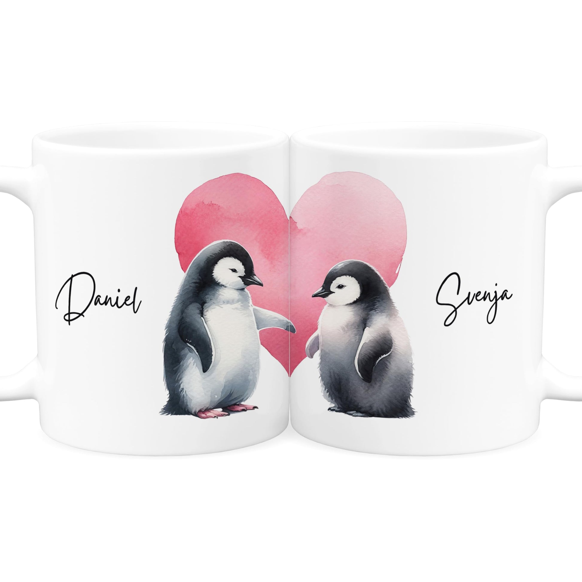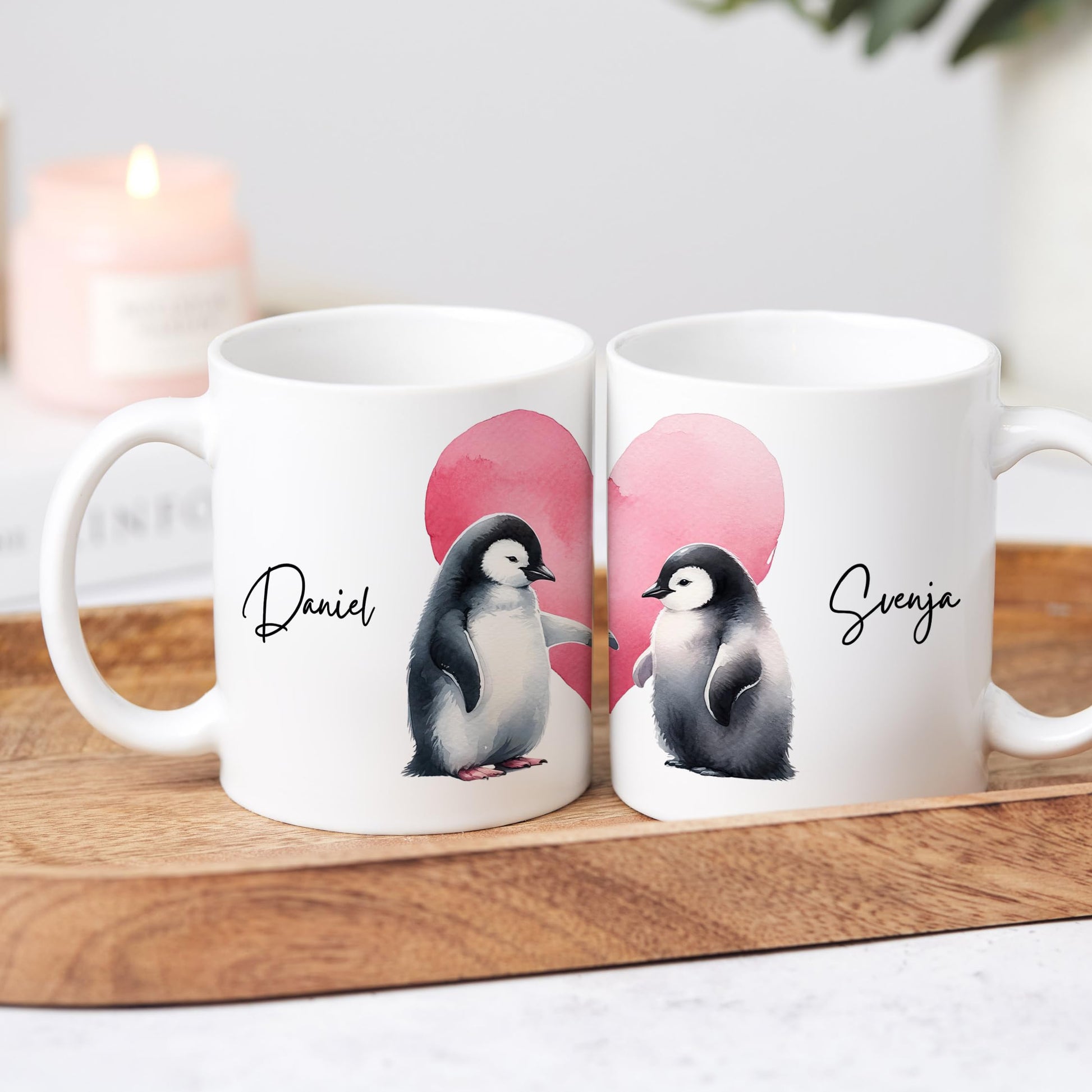 Überrasche deinen Partner oder deine Partnerin mit einem einzigartigen Partnertassen Set personalisiert, das perfekt für Paare ist, die ihren gemeinsamen Alltag auf eine besondere Weise genießen möchten. Diese personalisierten Tassen sind das ideale Partner Geschenk, das nicht nur funktional, sondern auch liebevoll und individuell mit Pinguinen gestaltet ist. Sie eignen sich hervorragend als Pärchen Geschenke für den besonderen Anlass, wie den Jahrestag, Valentinstag oder als Hochzeitsgeschenk. Unsere Kaffeetassen personalisiert bieten dir die Möglichkeit, beide Tassen mit euren Namen zu versehen. Mit diesen Partner Geschenken für beide erhält das Frühstück oder der Kaffee am Morgen eine ganz persönliche Note. Die Tassen sind aus hochwertigem Keramikmaterial gefertigt, das sowohl langlebig als auch spülmaschinenfest ist - so kannst du jeden Tag deinen Kaffee oder Tee in einer Tasse genießen, die deine Liebe widerspiegelt. Das Partnertassen 2er Set personalisiert ist nicht nur ein praktisches Alltagsaccessoire, sondern auch ein wunderschönes Andenken, das euch immer an die besonderen Momente in eurer Beziehung erinnert. Mit einem personalisierten Partner Geschenk kannst du deine Gefühle auf eine sehr besondere Weise ausdrücken. Bestelle jetzt das personalisierte Partnertassen Set und mache deinem Partner oder deiner Partnerin ein unvergessliches Geschenk, das für immer in Erinnerung bleibt. Perfekt für jedes Partner Geschenk - und ideal für alle, die ihre Liebe täglich feiern möchten!