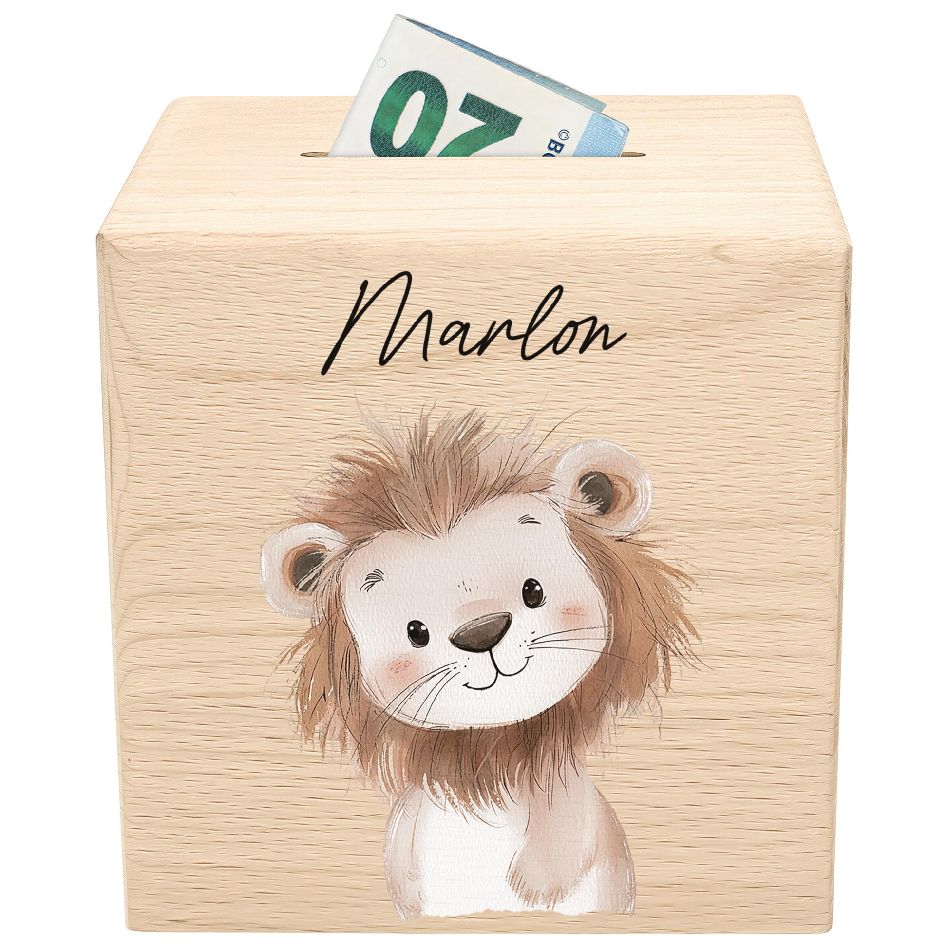 Spardose für Kinder Löwe personalisiert Safari Tiere Sparbox aus Holz Sparschwein mit Schlüssel Taufgeschenk für Jungen & Mädchen