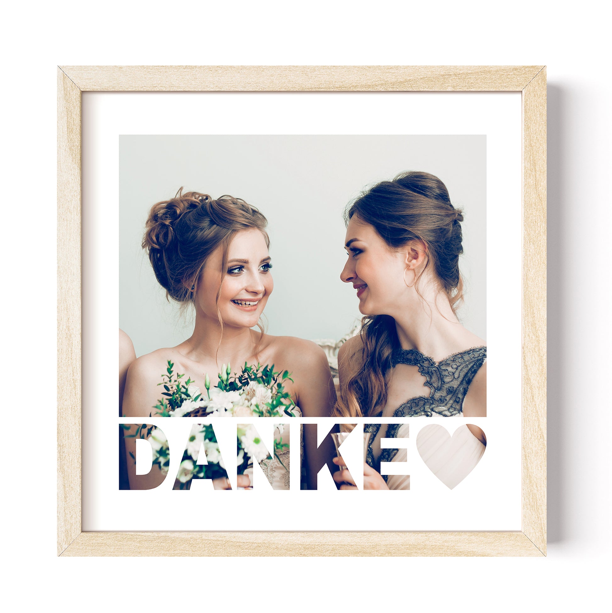 Das Trauzeugin Fotoposter mit eurem Foto personalisiert ist das perfekte Geschenk für jede Trauzeugin, die an der Seite der Braut an ihrem großen Tag gestanden hat. Dieses einzigartige Trauzeugin Poster ist eine wunderschöne Erinnerung an die wertvolle Rolle, die die Trauzeugin bei der Hochzeit gespielt hat. Es ist eine einfühlsame Art und Weise, um "Danke" zu sagen und die unvergesslichen Momente der Hochzeit zu feiern. Das Trauzeugin Bild mit dem Wort “Danke” und einem Herzen ist ein persönliches Geschenk für die Trauzeugin, das sie für immer schätzen wird. Das Poster ist in einer stilvollen Art und Weise gestaltet, die perfekt für jede Inneneinrichtung geeignet ist. Es ist ein zeitloses Geschenk, das für viele Jahre an die Hochzeit erinnert. Das Geschenk für die Trauzeugin Hochzeit ist sehr wichtig und sollte mit viel Liebe und Sorgfalt ausgewählt werden. Das Trauzeugin Bild mit Foto ist eine großartige Wahl, da es die Liebe und Dankbarkeit der Braut zeigt. Es ist ein Geschenk, das von Herzen kommt und das für viele Jahre geschätzt wird. Das Trauzeugin Poster ist in verschiedenen Größen erhältlich, sodass es für jede Einrichtung geeignet ist. Es kann in einem Rahmen aufgehängt (NICHT IM LIEFERUMFANG ENTHALTEN) oder einfach an die Wand geheftet werden. Das Poster ist aus hochwertigem Papier gefertigt und hat eine matte Oberfläche, die das Foto perfekt zur Geltung bringt. Zusammenfassend ist das Fotogeschenk eine wunderschöne Geschenkidee für jede Trauzeugin. Es ist ein Geschenk, das von Herzen kommt und das die Dankbarkeit und Liebe der Braut zeigt. Das Poster ist eine wunderbare Erinnerung an die Hochzeit und wird für viele Jahre geschätzt werden. Es ist ein Geschenk, das man der Trauzeugin mit Stolz und Freude überreichen kann.