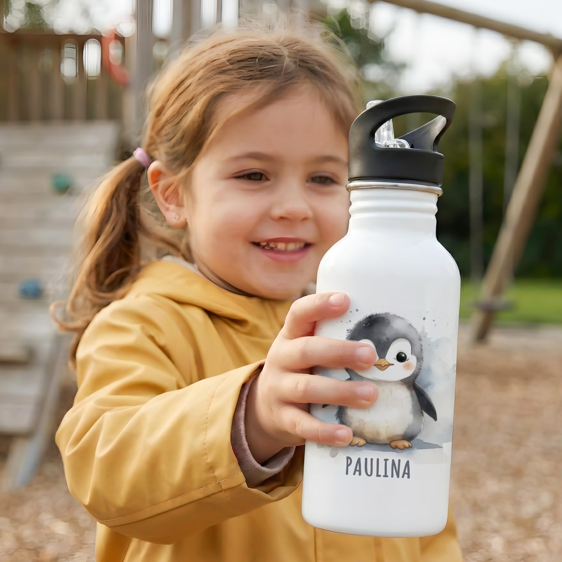 Trinkflasche Kinder Namen Pinguin Edelstahl