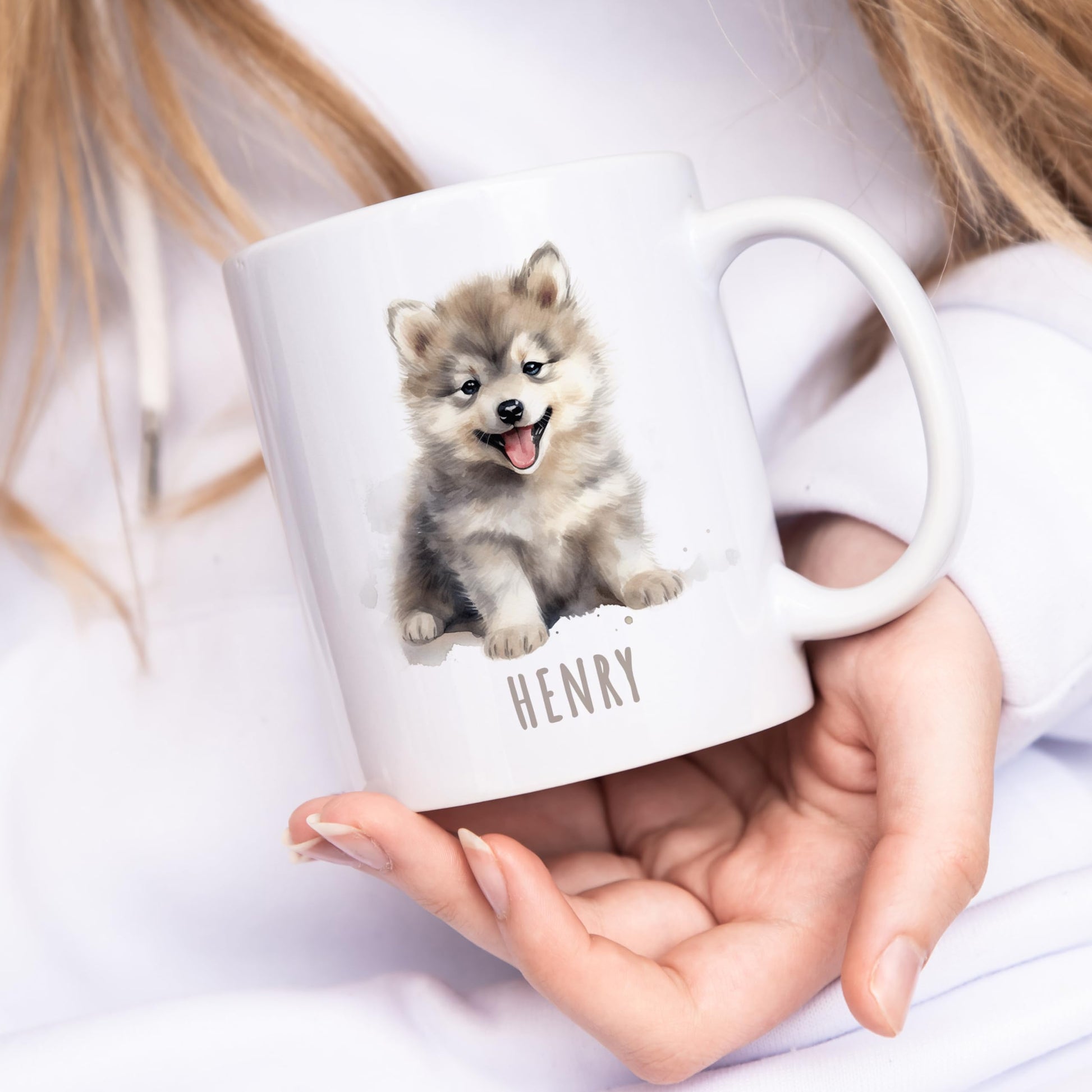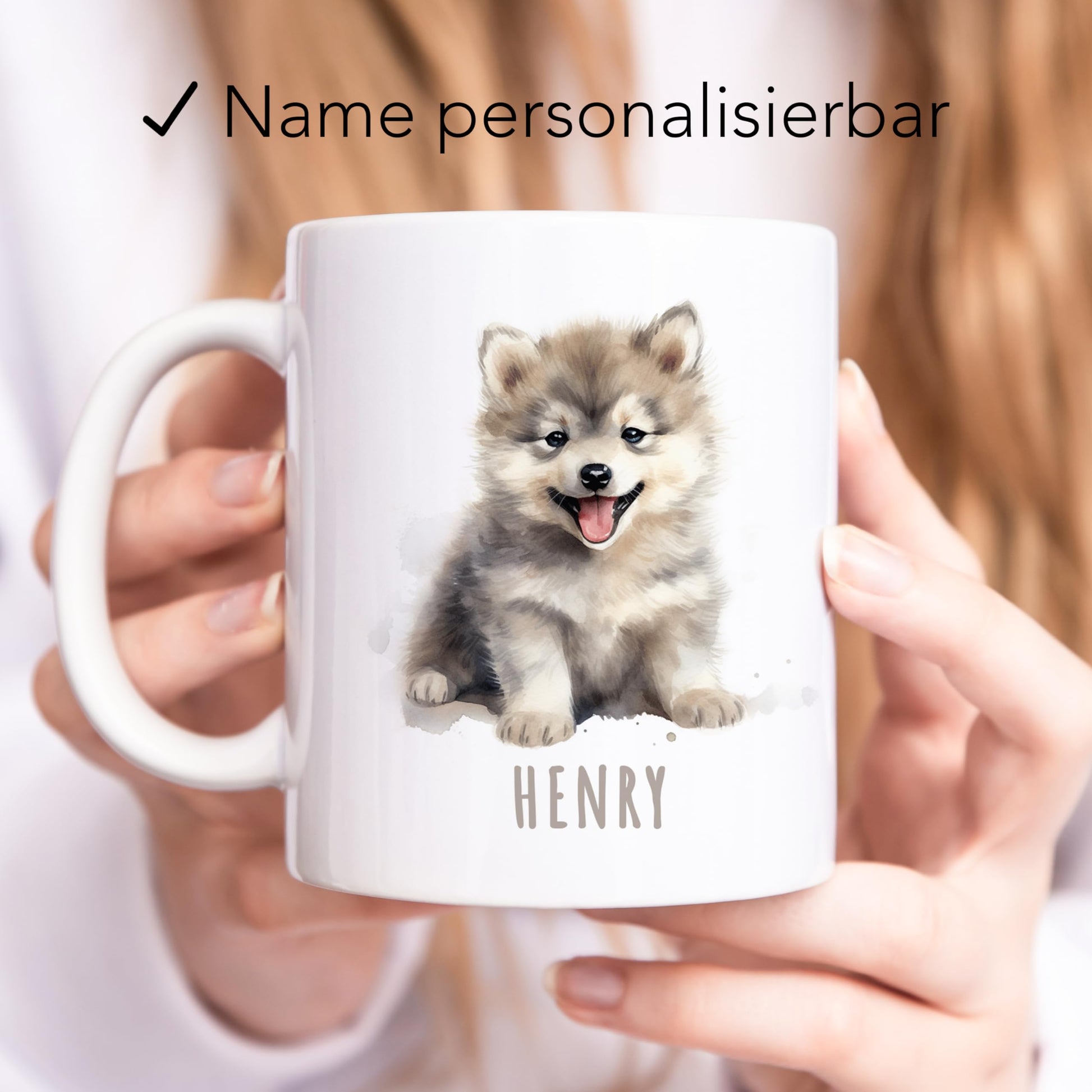 Die personalisierte Wolf Tasse - Spaß und Freude für Groß und Klein. Wölfe sind nicht nur die Lieblingstiere vieler Kinder, sondern sie strahlen auch Fröhlichkeit und Unbeschwertheit aus. Unsere personalisierte Wolf Kaffeetasse ist daher das ideale Geschenk, um Jungen und Mädchen gleichermaßen zu begeistern. Diese niedliche Kindertasse zeigt einen fröhlichen Wolf, der garantiert ein Lächeln auf jedes Gesicht zaubert. Der besondere Clou: Du kannst die Tasse mit dem Namen des Besitzers oder der Besitzerin personalisieren. Das macht die Tasse zu einem einzigartigen und persönlichen Geschenk, das im Alltag für gute Laune sorgt. Ob als Geschenk zum Kindergeburtstag, zum Schulanfang oder einfach nur als Überraschung für zwischendurch, die personalisierte Keramiktasse ist vielseitig einsetzbar. Kinder werden die lustige Illustration lieben und stolz darauf sein, ihre eigene Tasse zu besitzen. Aber nicht nur Kinder werden von dieser Tasse begeistert sein. Auch Erwachsene, die eine Vorliebe für niedliche und humorvolle Designs haben, werden sich über dieses Geschenk freuen. Ob im Büro, Kindergarten oder zu Hause, diese Tasse wird zum Hingucker und Gesprächsthema. Unsere Tassen sind aus hochwertiger Keramik gefertigt und wurden so gestaltet, dass sie den Anforderungen des täglichen Gebrauchs standhalten. Sie sind robust, langlebig und leicht zu reinigen. Egal ob für den morgendlichen Kaffee, Tee oder für Kakao am Abend, die Tasse ist vielseitig einsetzbar. Die personalisierte Wolf Namenstasse ist nicht nur ein Geschenk, sondern auch ein täglicher Begleiter, der Freude und gute Laune in den Alltag bringt. Sie erinnert daran, dass es wichtig ist, auch im stressigen Alltag das Lächeln nicht zu vergessen. Überrasche deine Lieben, sei es Kinder oder Erwachsene, mit dieser entzückenden Tasse und schenke ihnen Freude, Spaß und ein ganz persönliches Geschenk. Bestelle jetzt und zaubere ein Lächeln in den Alltag!